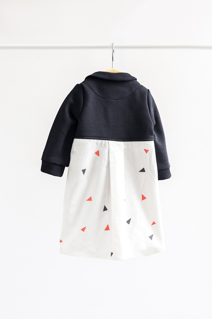 Платье комбинированное из разных материалов. Спереди похоже на платье-поло с воротничком на пуговицах и мягкими манжетами. Выполнено из нежного хлопкового трикотажа тринитки с петлей. Эластичный, мягкий на ощупь, пропускает воздух и не вызывает раздражение кожи.
