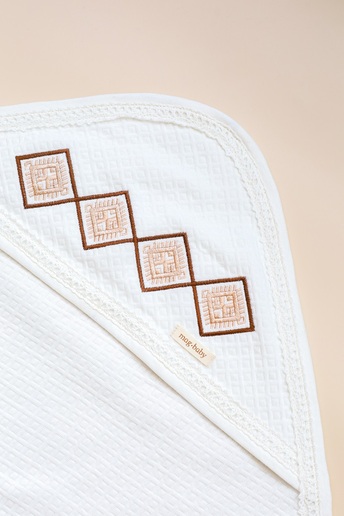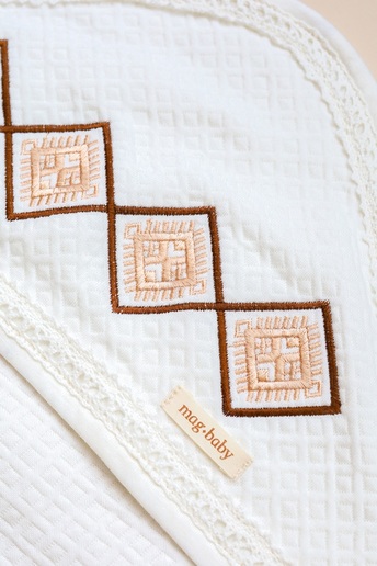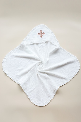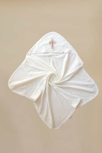 Изготовлена из нежнейшего из существующих трикотажей - интерлока, который сшит в два слоя. Благодаря хлопковому составу хорошо впитывает влагу, поэтому отлично подойдет для крещения.