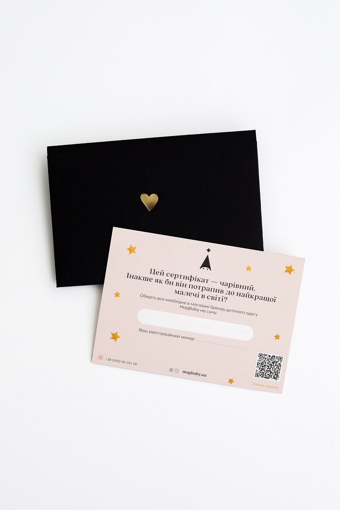 Сертификат позволит приобрести не только волшебные вещи нашего бренда, но и подарит сказочные эмоции ребенку и его родителям.