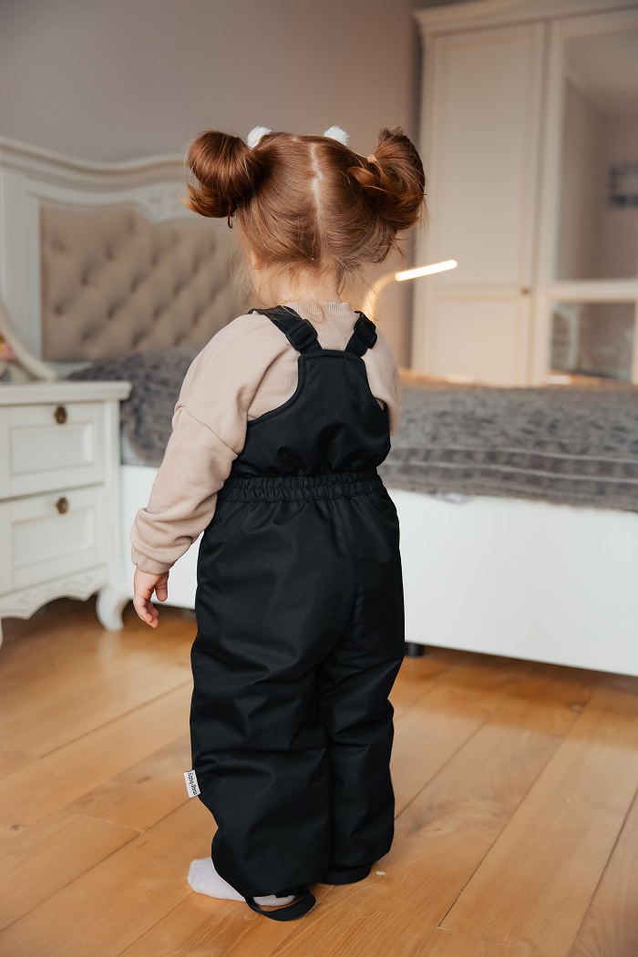 Полукомбинезон пошит из плащевки на мембране. Это плотный, практичный материал, не промокающий, не продуваемый и способствующий терморегуляции. И совсем не боится грязи! А её, ой как много, в осенне-зимний период. Все загрязнения легко вытереть влажной губкой или тряпкой.