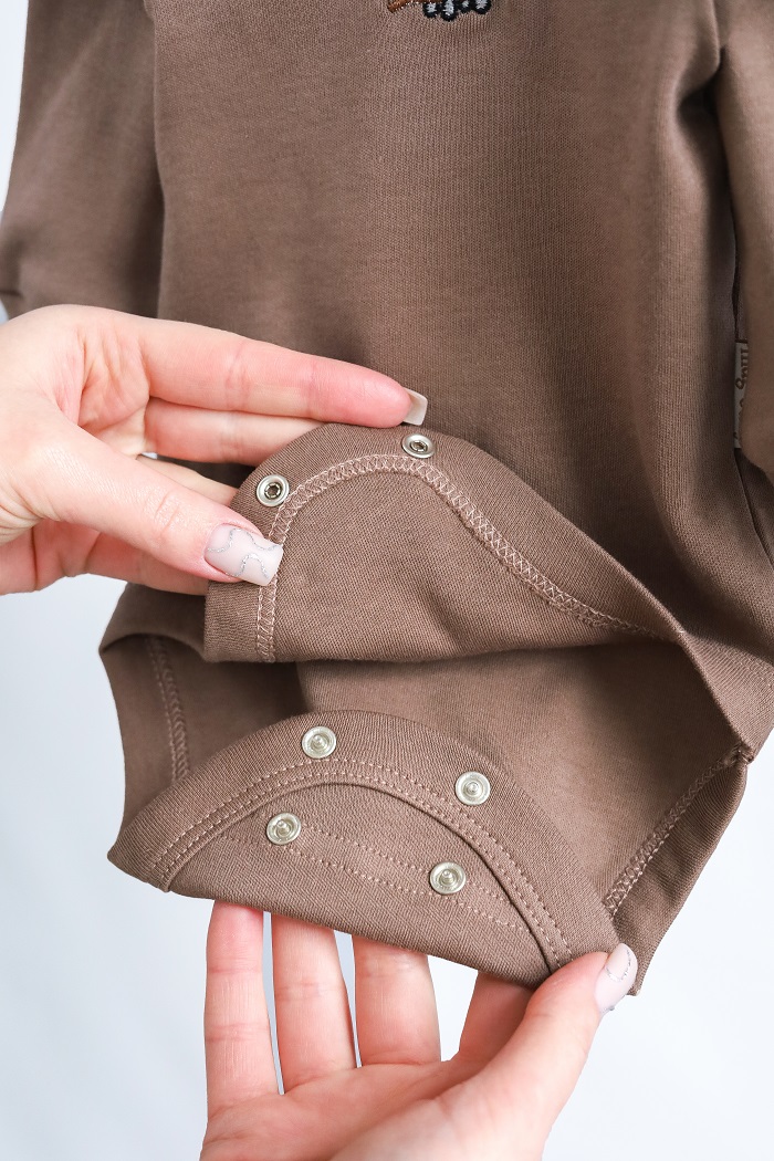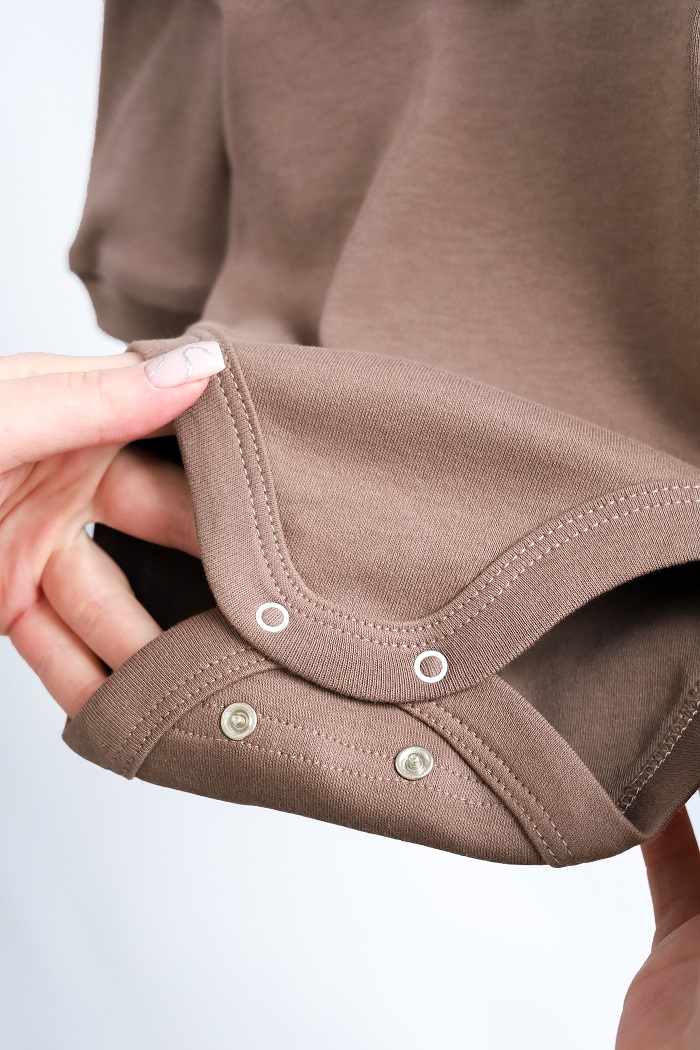 Пошит из 100% хлопка. Мягкий и приятный к телу, не вызывает аллергии. Кнопки не содержат токсичного никеля в составе.