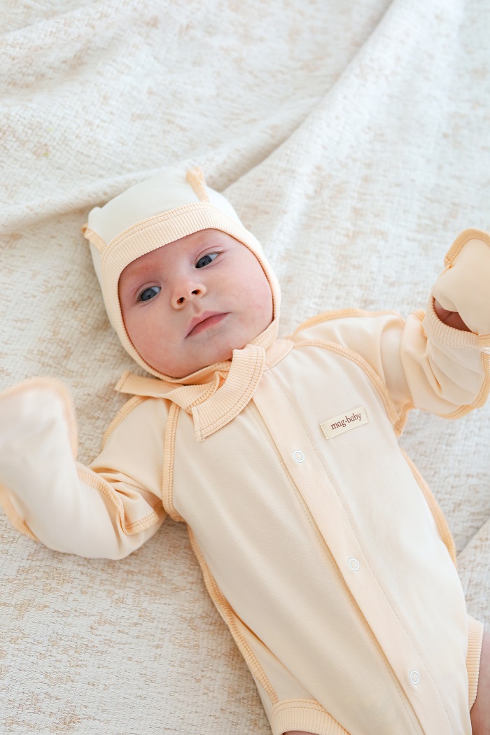 Легко надевать и снимать благодаря завязкам. Они плотно фиксируют шапочку на голове малыша, но не давят и не пережимают нежную кожу.