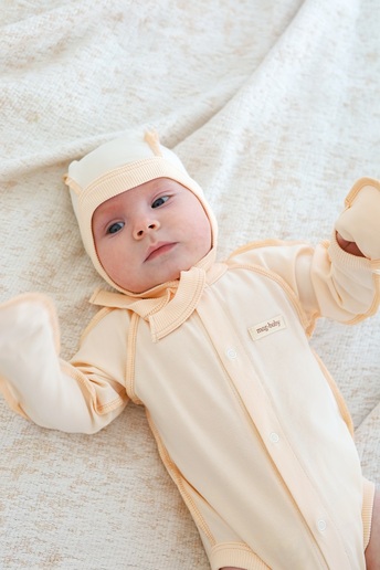Отворот мягко, без сдавливания облегает головку и защищает маленькие ушки.