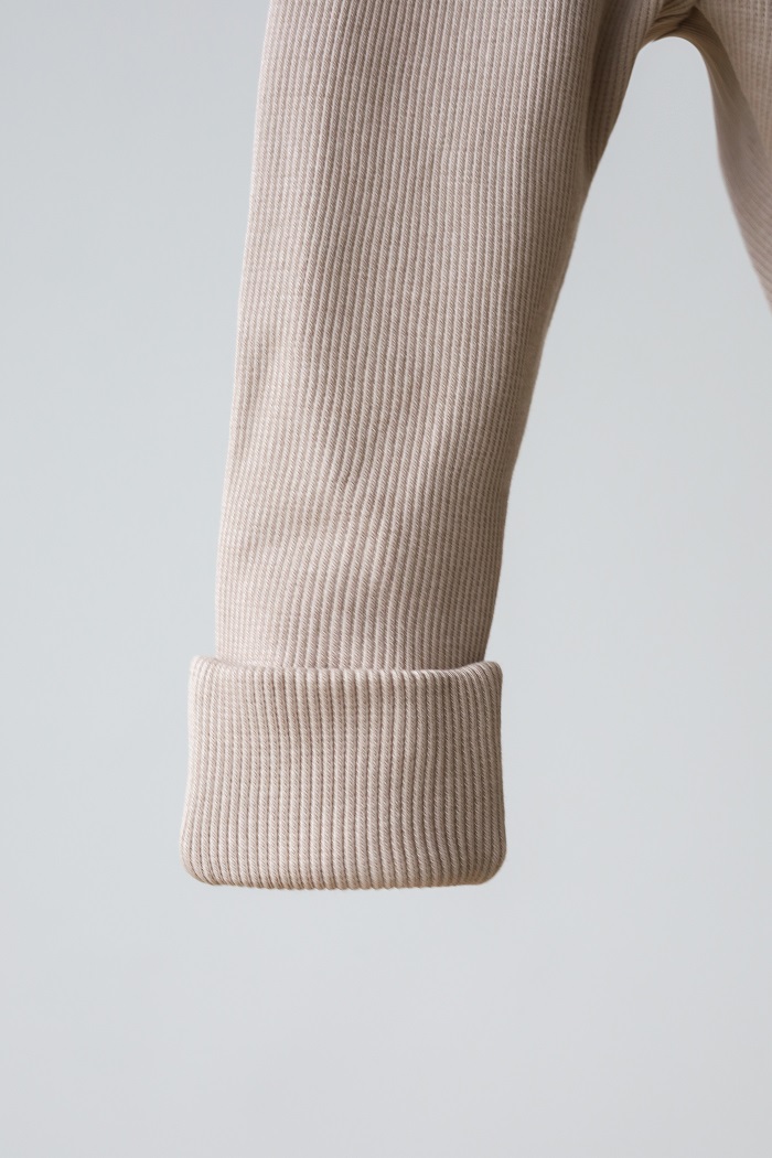 Штаны-ползуны идеально комбинируются с боди-толстовкой "Juice". Удобно иметь кофту и под нее 2 таких лосин и менять образы — монохромный и более яркий.