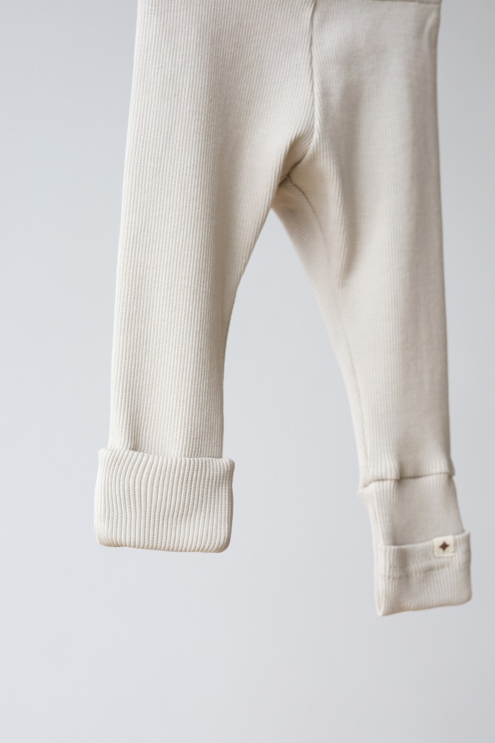 Штаны-ползуны идеально комбинируются с боди-толстовкой "Juice". Удобно иметь кофту и под нее 2 таких лосин и менять образы — монохромный и более яркий.