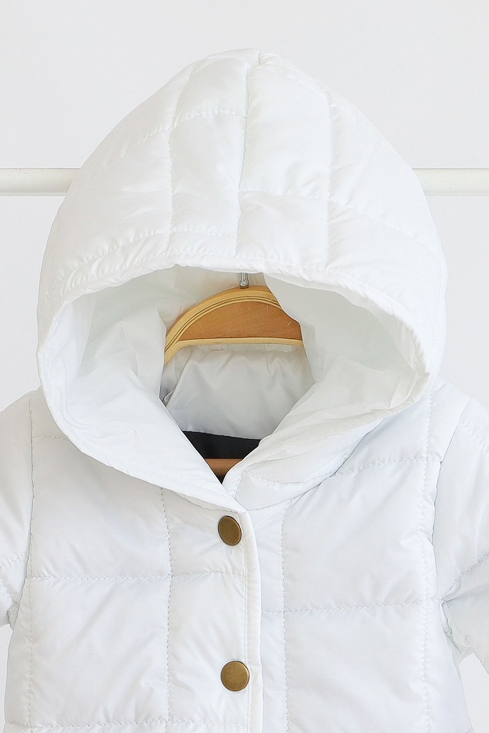 Комбинезон пошит из стеганой плащевой ткани и застегивается на кнопки аж до самых стоп. В общем, он создан для любимых поп) О как, заговорила стихами.