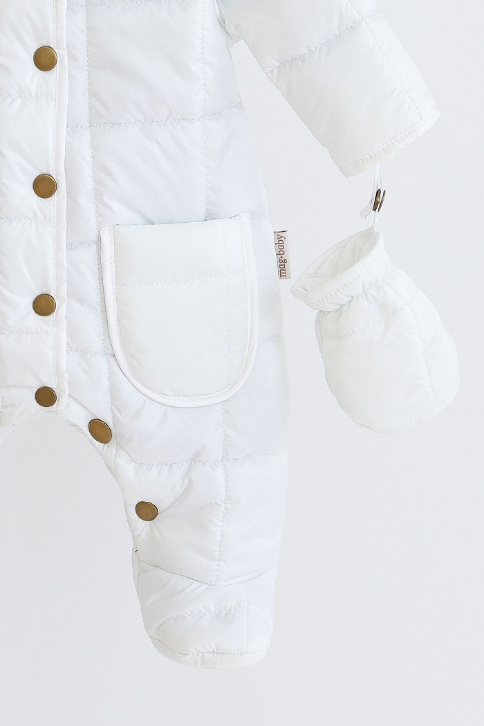 Внутри комбинезон пошит из подкладочной ткани и утеплён силиконом. Отлично подойдёт на демисезонную пору. В комплекте идут варежки на кнопке.
