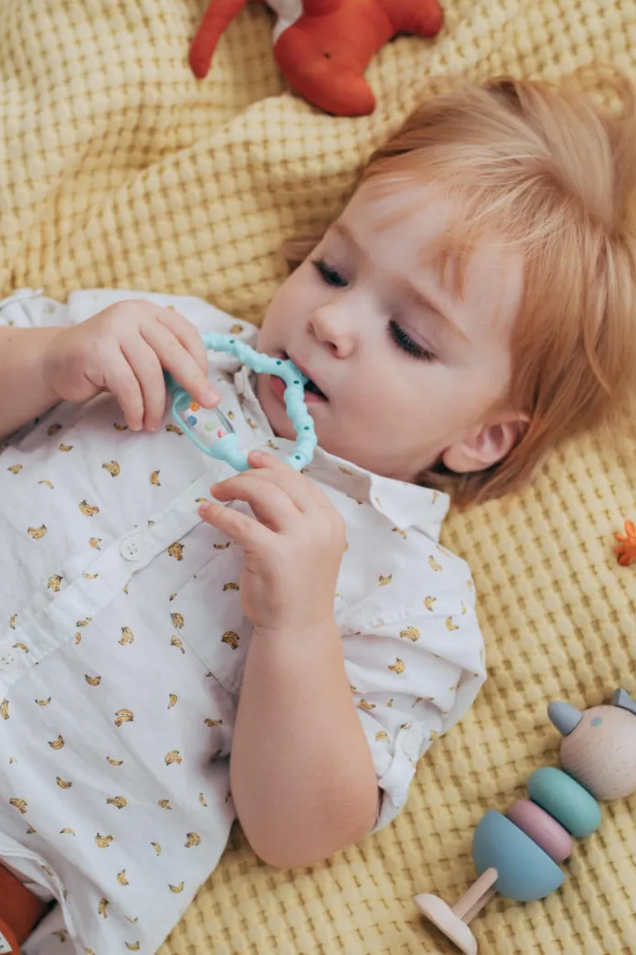 Стимулятор прорізування молочних зубів CURAPROX Baby сприяє зниженню больових відчуттів у дітей під час прорізування молочних зубів.