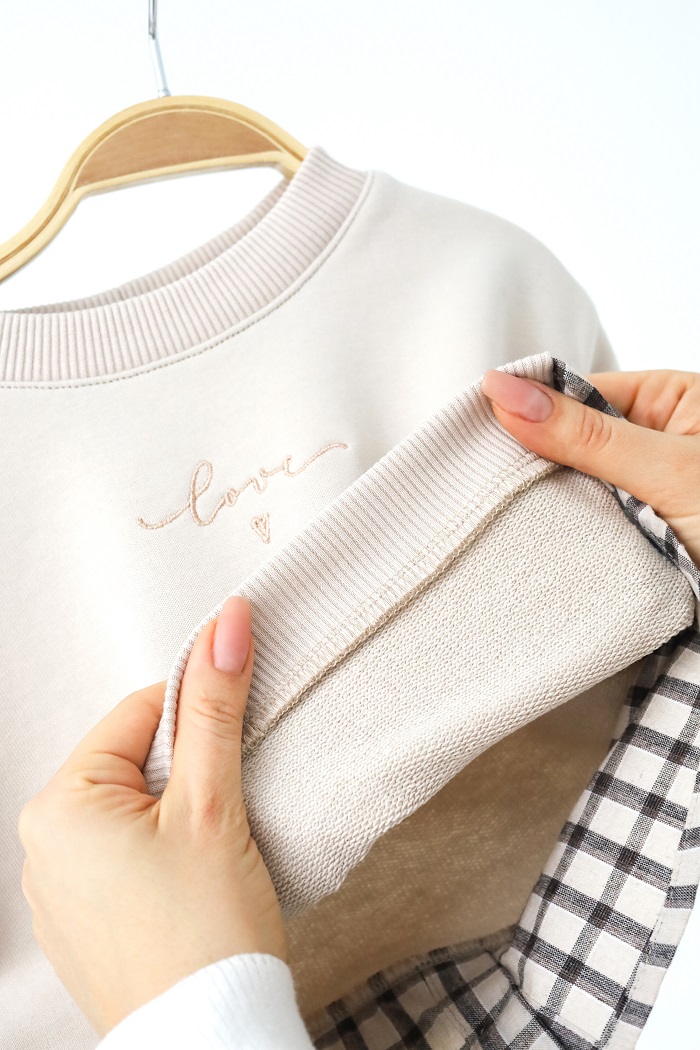 - Триниточный трикотаж с петлей: 70% хлопок, 30% полиэстер