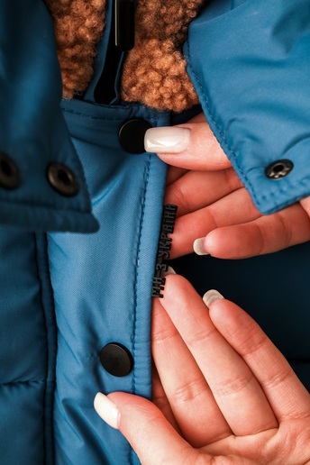 Молния имеет подборт изнутри (планка, которая не позволяет вещам попадать в молнию при застегивании, прикрывает шею от бегунка и служит защитой от ветра в той же молнии). Снаружи есть вторая планка, которая крепится тремя магнитами.