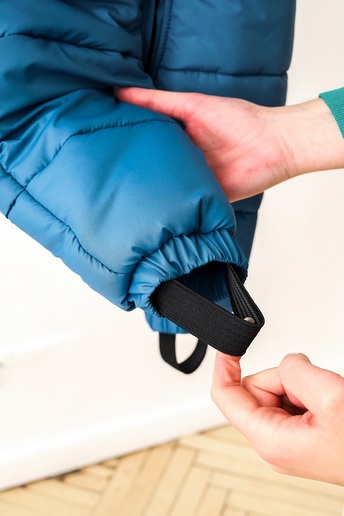 На штанинах есть силиконовая штрипка, которую вы можете регулировать в зависимости от размера обуви. Именно силиконовый состав в штрипке сделан для того, чтобы она не скользила по подошве ботиночек.