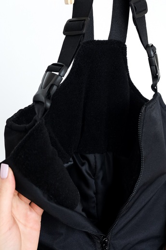 Внутри комбинезон в области груди, спины и ягодиц дополнительно утеплен флисом. В рукавах и штанинах в виде подкладки мы использовали плащевую ткань, которая гораздо плотнее обычной подкладочной ткани и дает возможность ручкам и ножкам скользить при одевании, сохраняя при этом все термо-свойства.