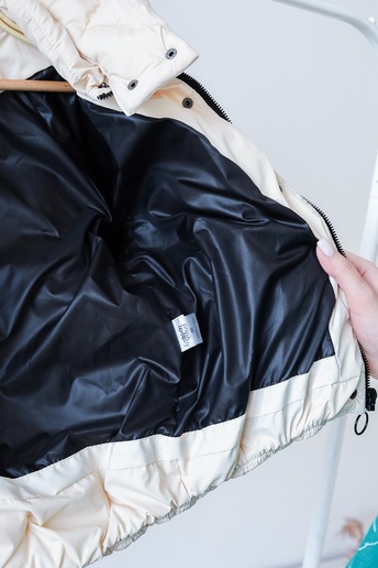 Внутри комбинезон в области груди, спины и ягодиц дополнительно утеплен флисом. В рукавах и штанинах в виде подкладки мы использовали плащевую ткань, которая гораздо плотнее обычной подкладочной ткани и дает возможность ручкам и ножкам скользить при одевании, сохраняя при этом все термо-свойства.