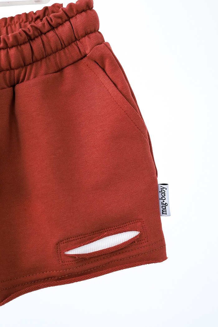 Широкая резинка на поясе мягко фиксирует шорты, а для более удобной посадки – шорты дополнительно регулируются шнурком.