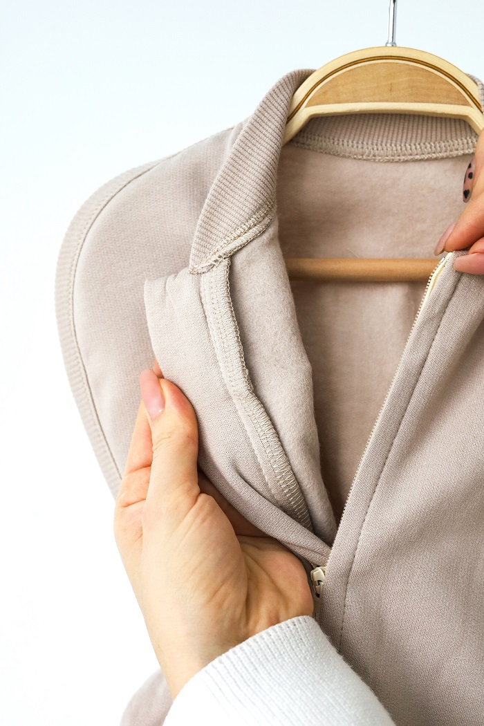 Вышивка на груди дарит немного сказки, а молния делает кокон практичным. Небольшая защитная планка заботится, чтобы подбородок оставался в безопасности. Вы ведь тоже помните эти ощущения от бегунка на подбородке с детства?