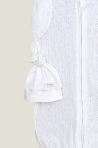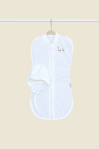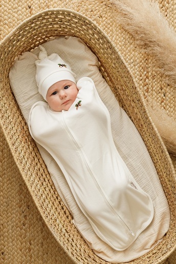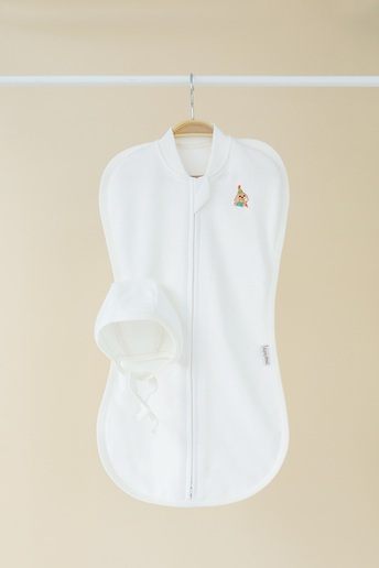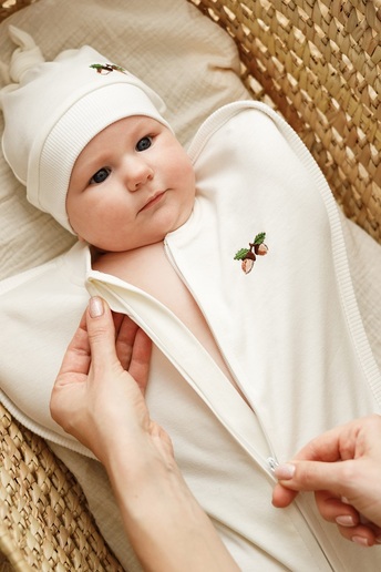В комплекте к пеленке идет очень удобная шапочка, надевать которую можно не только дома.