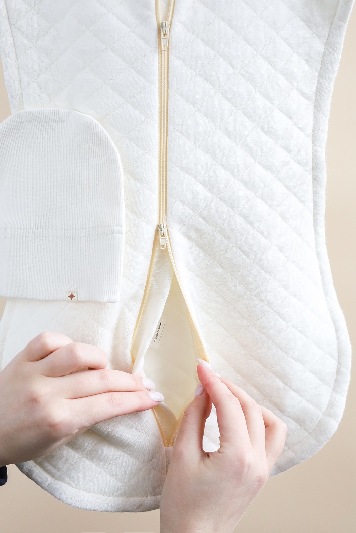 Кокон выполнен из материала под названием "Капитоне", который совместил в себе два слоя стеганого трикотажа (сверху и снизу) и тонким слоем синтепона между ними. Именно поэтому евро пеленки зефирной серии смогут как никто другой позаботиться о румяных щёчках в холодную пору )