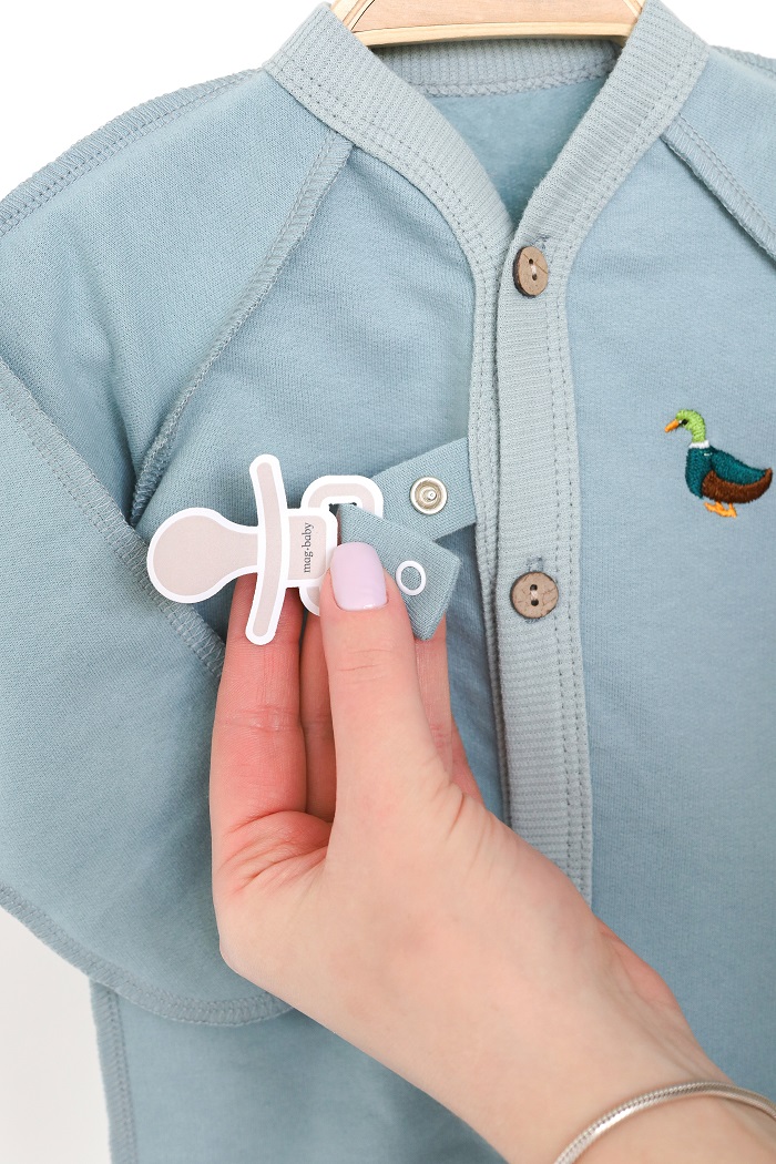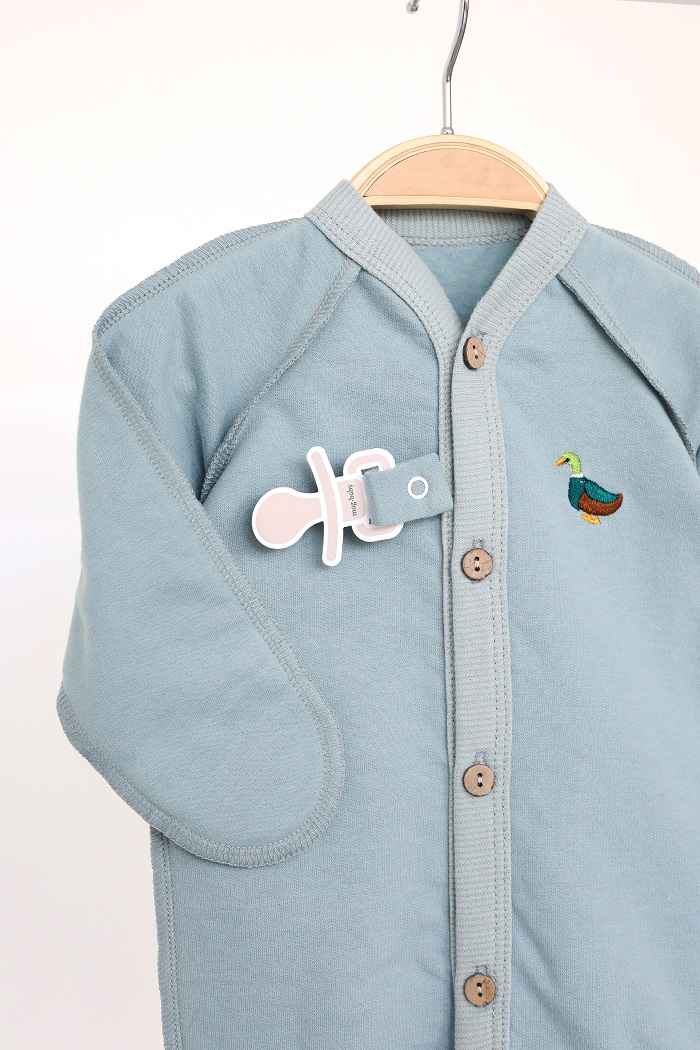 • Между 1 и 2 пуговицей имеется держатель для пустышки на кнопке, что очень удобно. Благодаря этому можно обойтись без лишних прибамбасов — во время сна они не будут мешать и пустышка не потеряется.