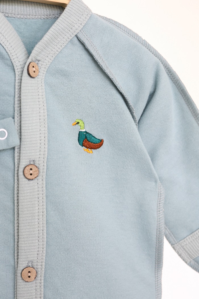 Что ни говорите, а красочная вышивка создает настроение даже в холодные пасмурные дни. Именно для таких мы и создали утепленный человечек «Emeri» с вышитым селезнем, голубкой и милыми утятами.