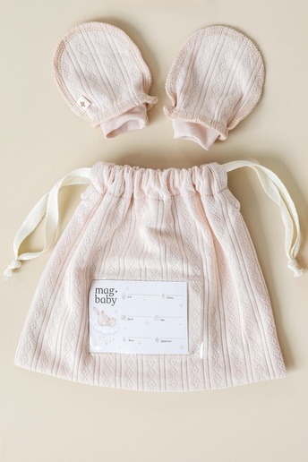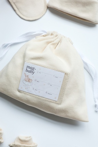 - Слюнявчик, пинетки, царапки. Слюнявчик, который сохранит одежду сухой, царапки, пинетки и красивая подарочная упаковка.