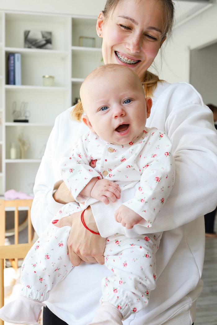 • 2 человечка: молочный и монохромный цветной. Молочный пошит из гладкого интерлока без начеса, а цветной — из двунитки, утепленный начесом изнутри. Все швы наружу, поэтому не будут раздражать и не натрут нежную кожу. Имеют отворотные царапки. Застегиваются на пуговицы, а между ножек на кнопки, чтобы было удобно сменить подгузник. Человечки имеют держатель на кнопке для пустышки или игрушки. При необходимости туда можно прицепить комфортер или грызунок. Все застежки из европейской фурнитуры, которая не содержит никеля и не вызывает раздражения.