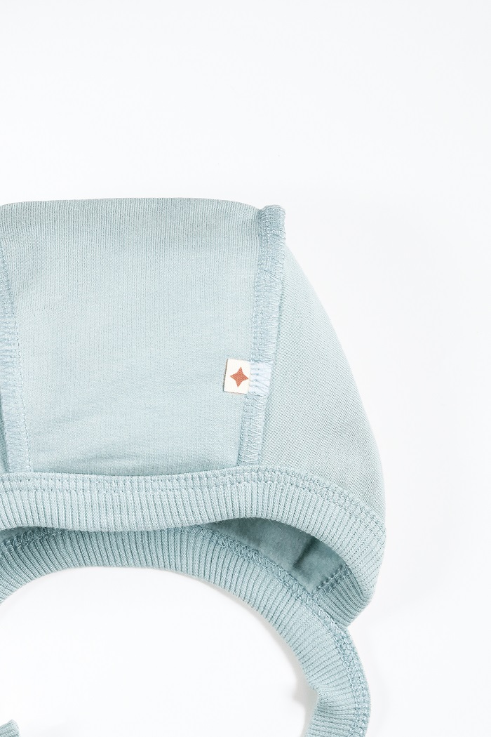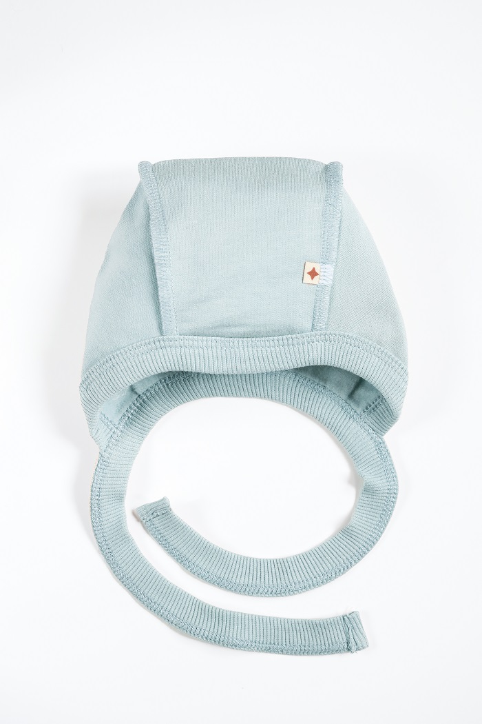 Легко надевать и снимать благодаря завязкам. Они плотно фиксируют шапочку на голове малыша, но не давят и не пережимают нежную кожу.