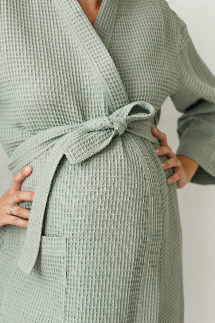 Изделие создано максимально практичным и в то же время стильным: силуэт а-ля кимоно с запахом, расклешенные к низу рукава, удобная длина, глубокий карман, петельки под пояс и петелька-вешалка.