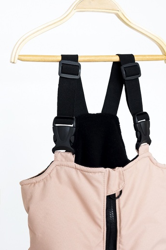 Штанины со штрипками надежно фиксируются на обуви, чтобы снег не попадал в ботиночки во время активных игр.