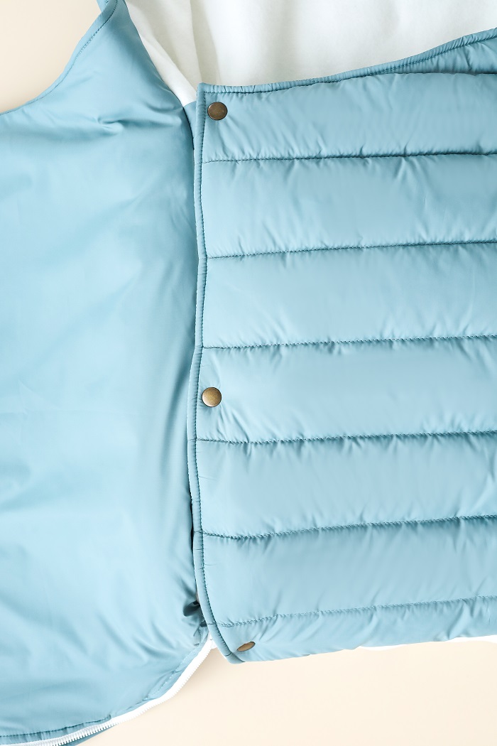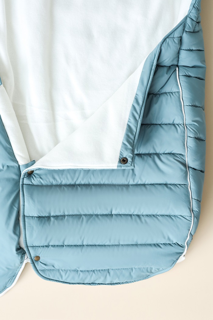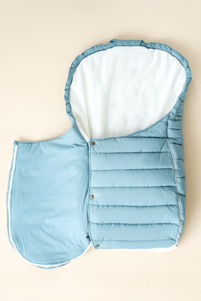 Уютное гнездышко для зимних прогулок. Надежно защищает от ветра, холода и влаги, в то же время дарит малышу комфорт. Снаружи пошит из плотной плащевки, которая не боится ветра или мокрого снега. Внутри – мягкий флис, приятный к телу. Утеплен лебединым биопухом. Это современный утеплитель: легкий, тёплый и совсем не громоздкий.