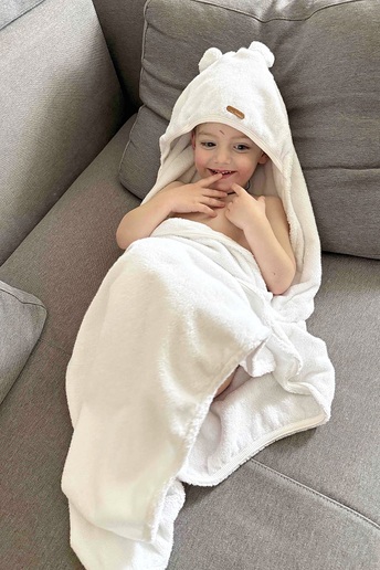 Махрова тканина зі 100% бавовни дбайливо вбирає вологу й дуже приємна до шкіри. Жодної жорсткості чи зайвого ворсу. Не спричиняє алергії чи подразнень, стійка до прання та швидко сохне.