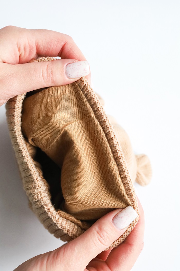 В'язана зовні, а всередині на 100% бавовняній підкладці. Натуральна тканина гіпоалергенна, дає змогу шкірі дихати та запобігає перегріву. Завдяки цьому малечі буде тепло та комфортно. Шапочка добре зігріває та зберігає тепло навіть у вологу погоду, а віскоза в складі додає зносостійкості після прання.
