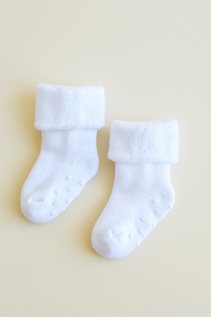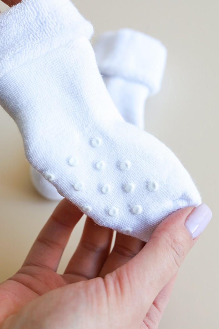 Декілька перших місяців новонароджені дітки дуже часто мерзнут. Причому, навіть при двадцяти градусах тепла. Причиною тому стає різка зміна звичних умов. Тому, навіть якщо ваше маля носить повзуни або чоловічки, шкарпетки не будуть зайвими.