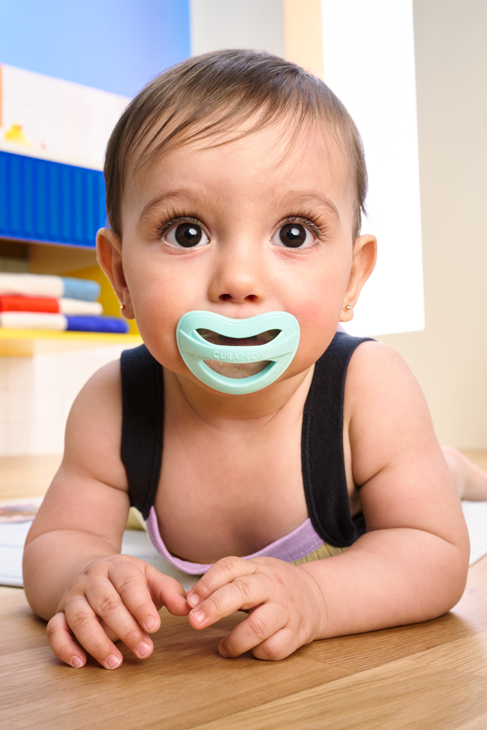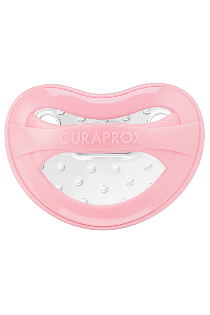 Бічні крила та тонкий наконечник пустушки CURAPROX розподіляють тиск на зуби і роз’єднує верхню та нижню щелепи для формування правильної оклюзії.