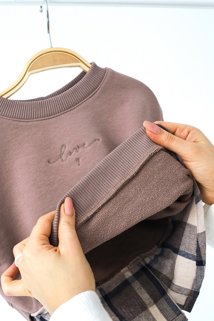 Не світшот, а справжня знахідка для маленьких модниць! Нестандартного крою, з імітацією картатої сорочки знизу. Ефект стильної багатошаровості, який і ви, і ми однаково любимо.