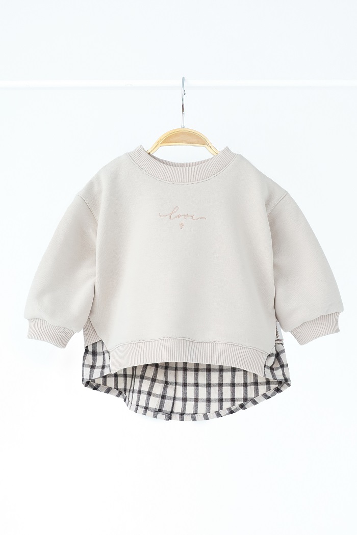 Не світшот, а справжня знахідка для маленьких модниць! Нестандартного крою, з імітацією картатої сорочки знизу. Ефект стильної багатошаровості, який і ви, і ми однаково любимо.
