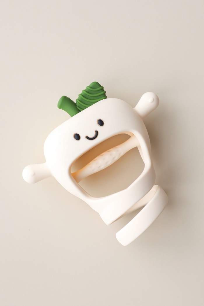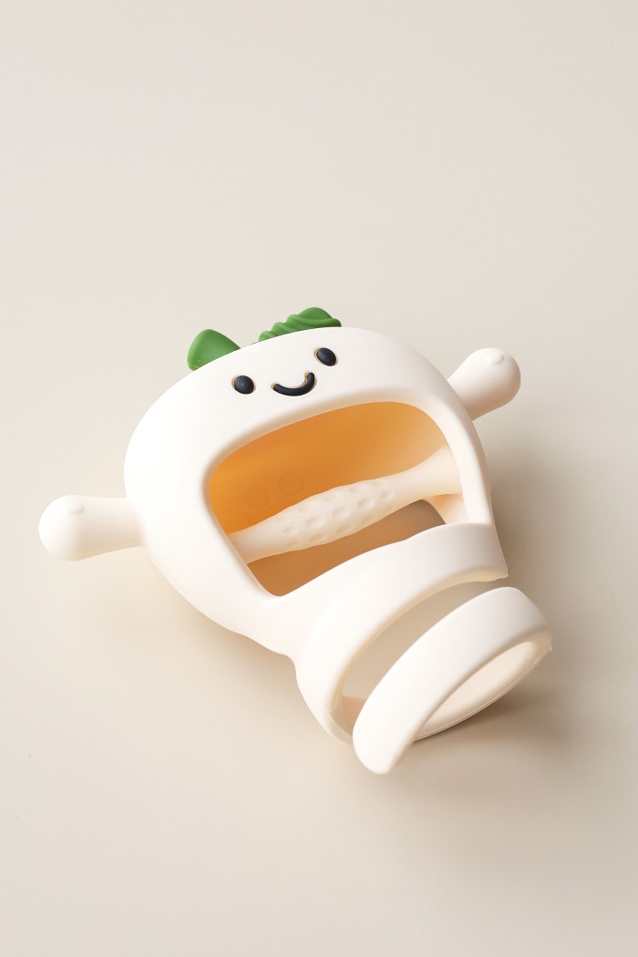 Коли зубчики тільки готуються з’явитися, малюк тягне до рота все, що трапляється під руку. І найчастіше — саме свій кулачок. Силіконовий прорізувач-рукавичка у формі яблучка зручний для маленьких долоньок та допомагає делікатно масажувати ясна.