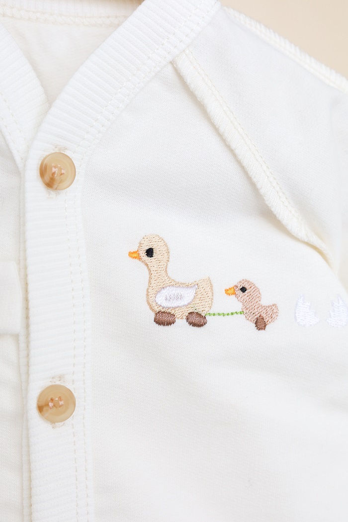 Що не кажіть, а барвиста вишивка створює настрій навіть у холодні похмурі дні. Саме для таких ми і створили утеплений чоловічок «Emeri» з вишитим селезнем, голубкою та милими каченятами.