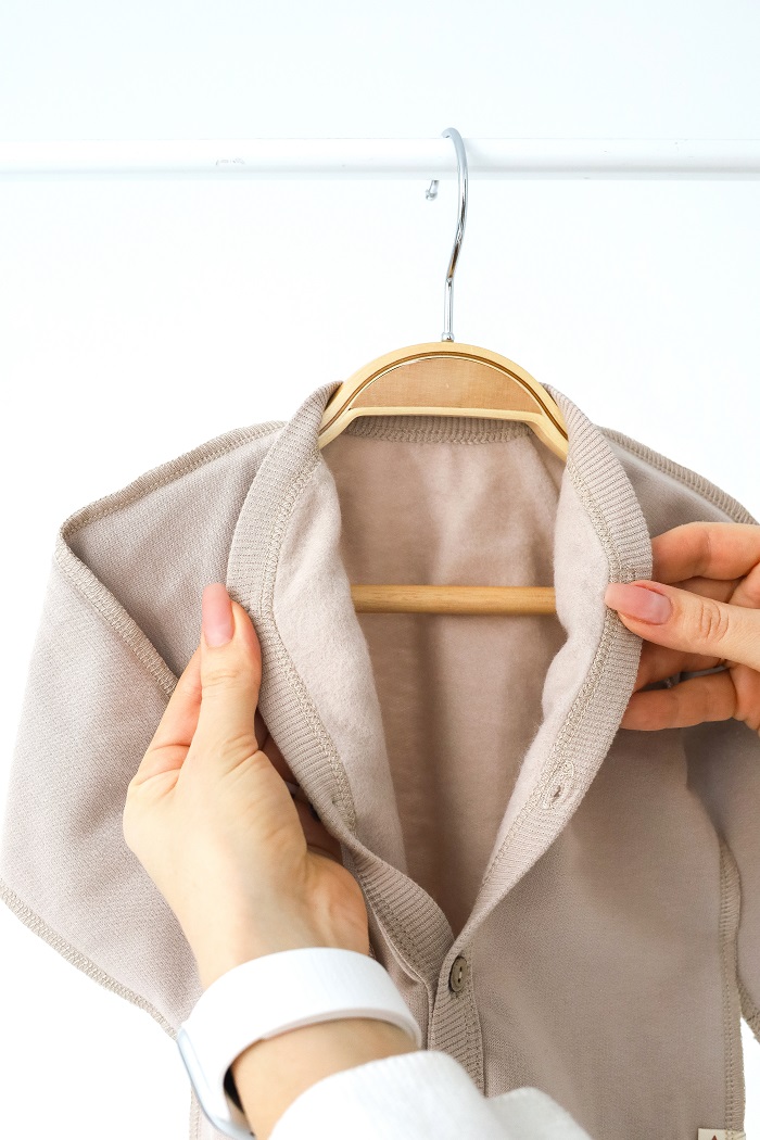 • Чоловічок застібається на ґудзики, а між ніжок — на кнопки, щоб було зручно змінити підгузок. До речі кнопки вироблені та сертифіковані в ЄС і не містять нікелю в складі.