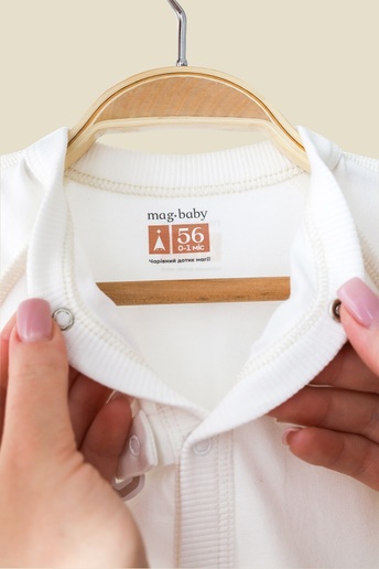 - Чоловічок застібається на ґудзики, а між ніжок — на кнопки, щоб було зручно змінити підгузок. До речі кнопки вироблені та сертифіковані в ЄС і не містять нікелю в складі.