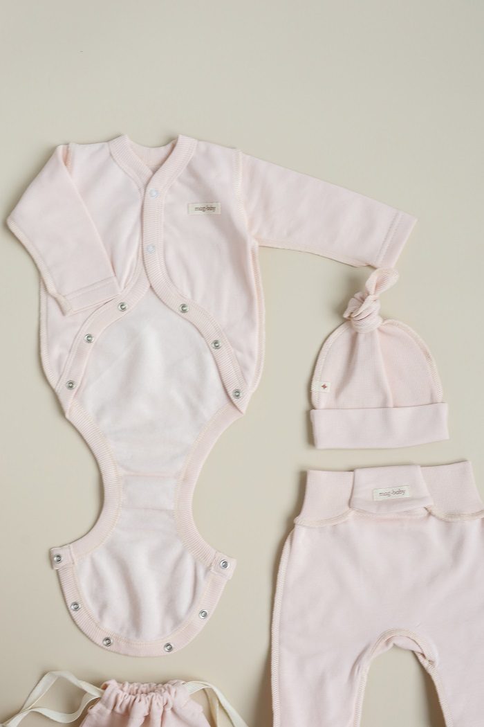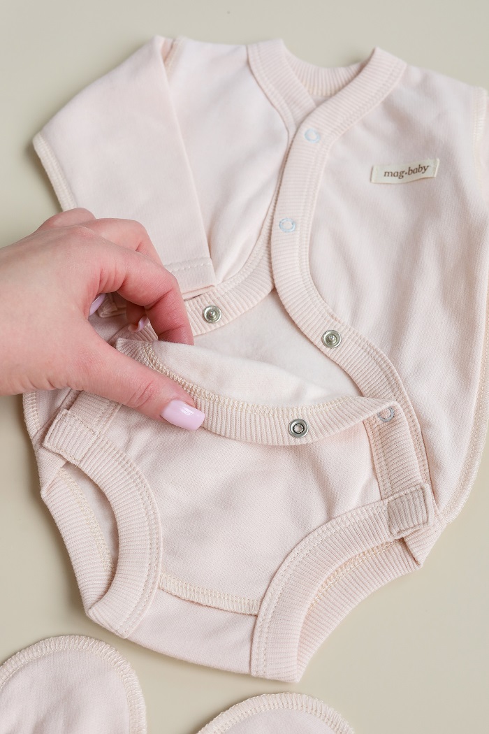 Має конструктивно розроблений легкий доступ до пупкової ранки. Це означає, що тканина не заважатиме, а ранка буде контактувати з повітрям і швидше загоїться. Коли пупочок відпаде, речі можна ще носити, як звичайні.