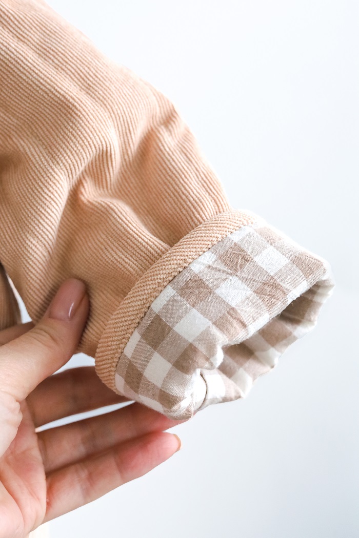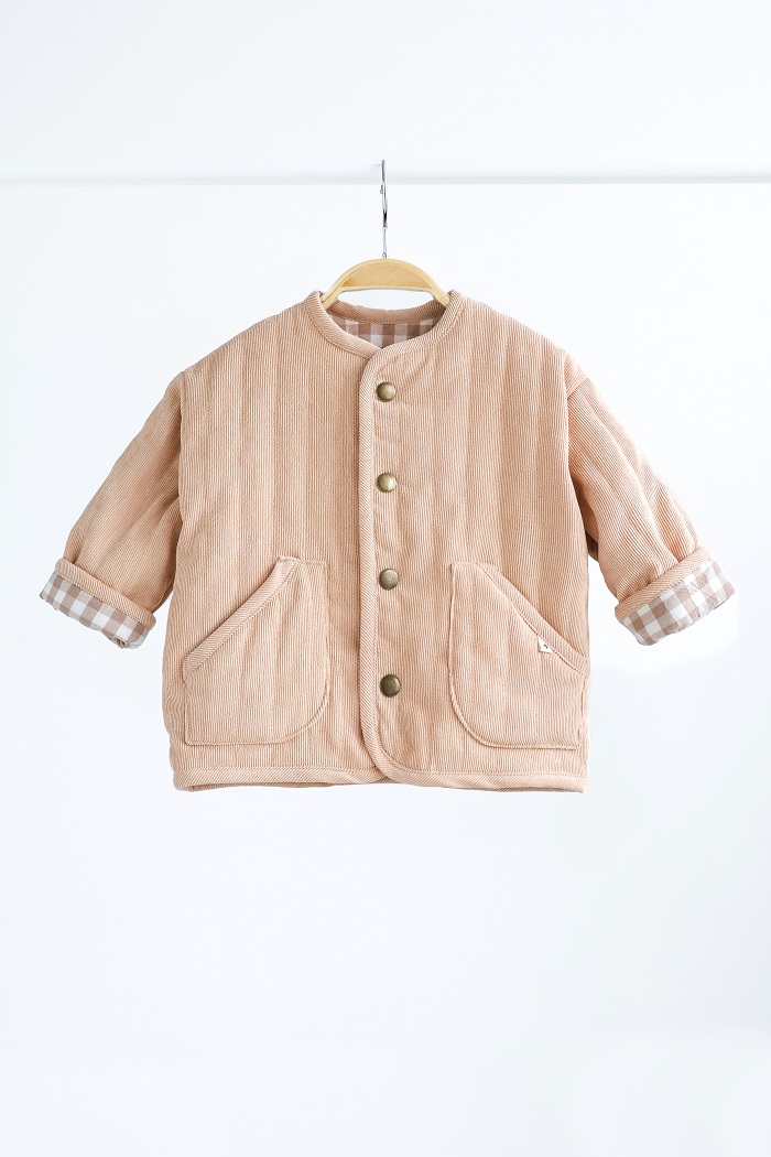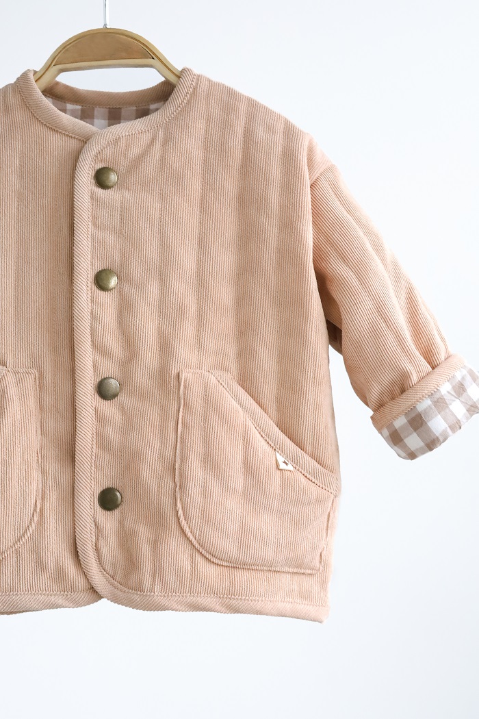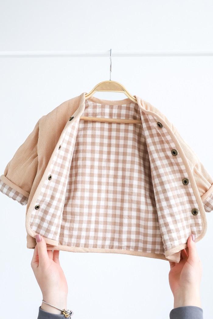 Куртка пошита з м’якого вельвету, дуже приємного на дотик для пальчиків. А всередині на бавовняній підкладці, комфортній для шкіри й доречній для міжсезоння — без перегріву та зайвих шарів.
