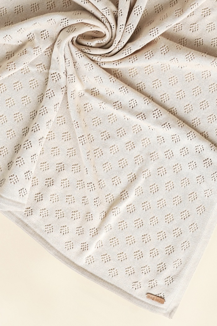 Вся справа скоріше у дрібних ажурних переплетеннях. Це все вони - дарують такі емоції. Ця чарівність зв'язана з нитки, що дуже приємна тактильно. В складі 50% бавовни і 50% акрилу. Бавовна добре пропускає повітря та дає змогу шкірі дихати. Акрил додає нитці міцності та еластичності. Тому плед зберігає свою форму навіть після численного прання.