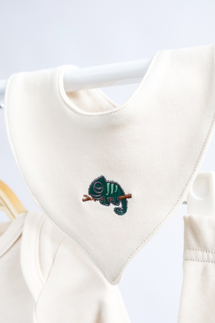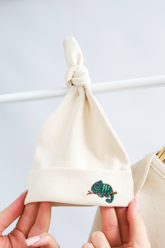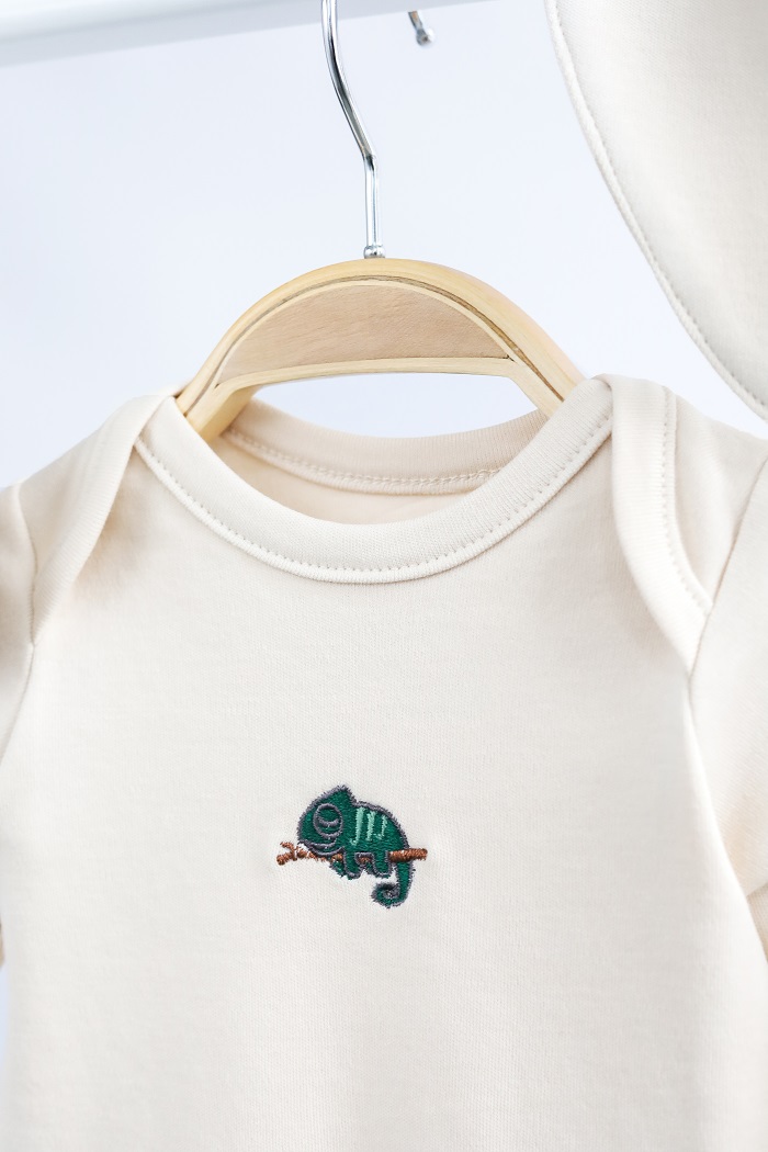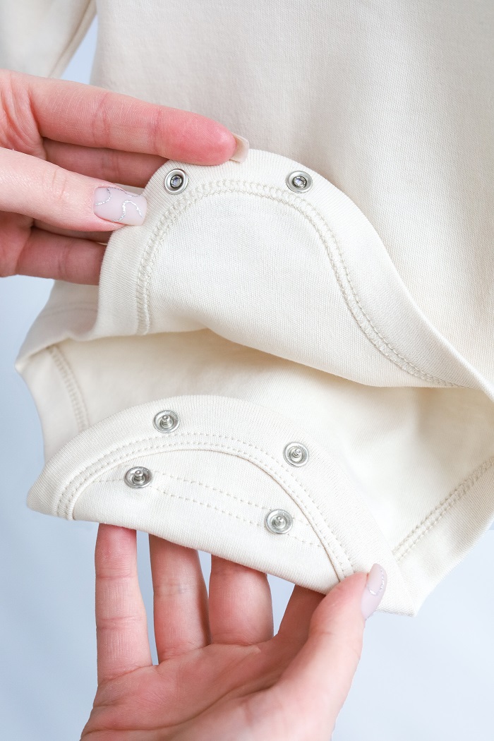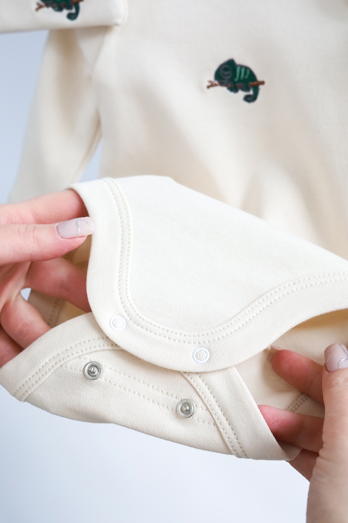 Пошитий зі 100% бавовни. М’якенький та приємний до тіла, не спричиняє алергію. Кнопки не містять токсичного нікелю в складі.